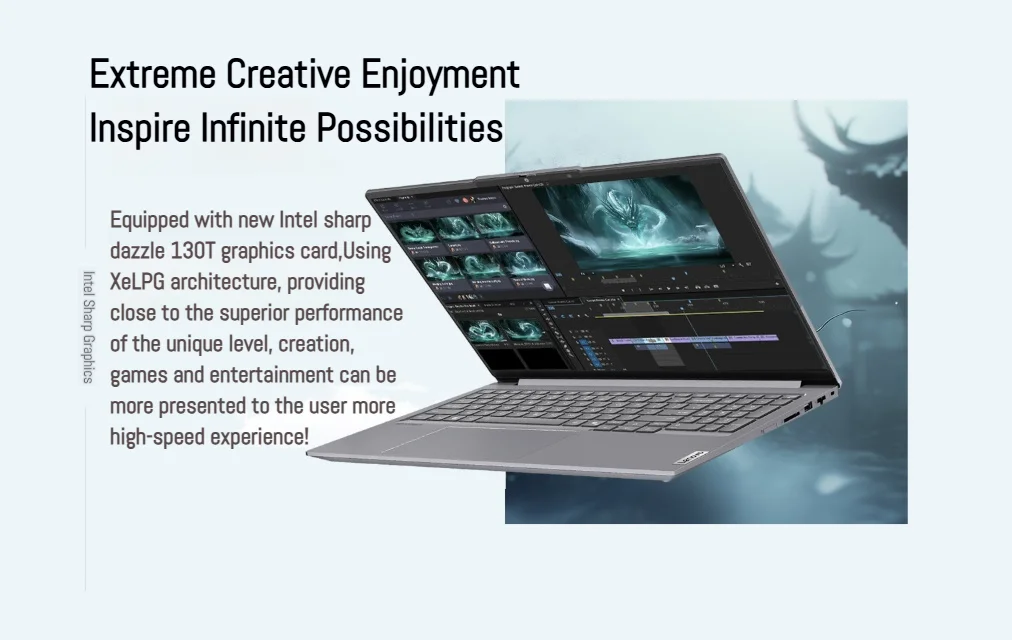 Ausgestattet mit einer neuen Intel-Grafikkarte mit scharfem Blendung 130T. Mithilfe der XeLPG-Architektur, die die überlegene Leistung nahe kommt