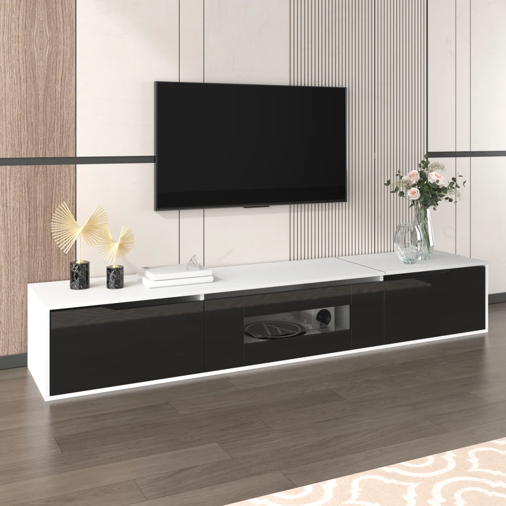 High gloss varnish: The high gloss varnish gives the TV stand an elegant and modern look that beautifys any room.