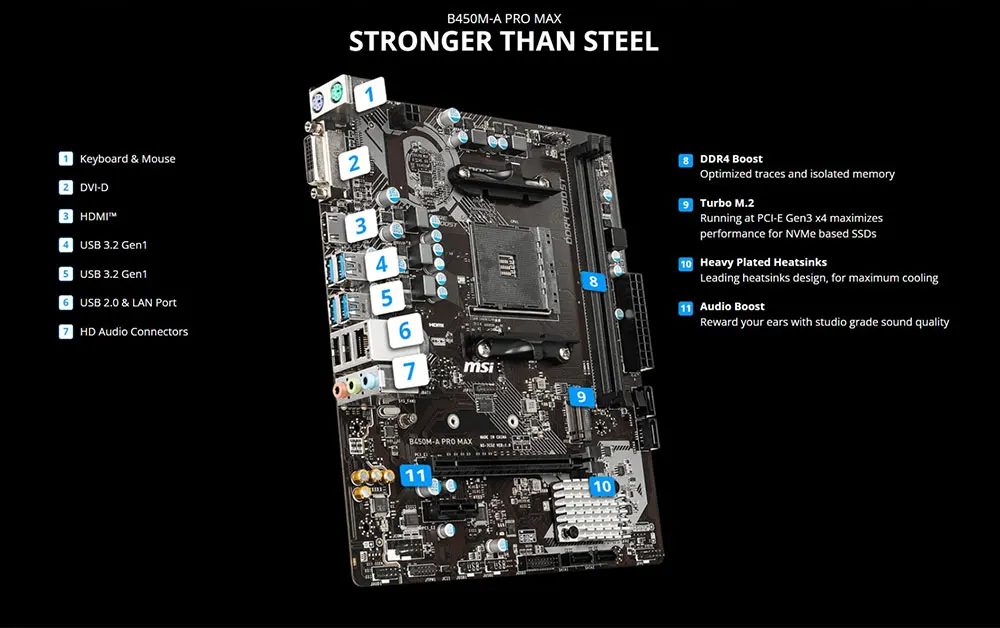 • Leistungs starker Chipsatz :Ausgestattet mit einem AMD B450-Chipsatz bietet dieses Motherboard überlegene Leistung für anspruchs volle Anwendungen wie die Video produktion.