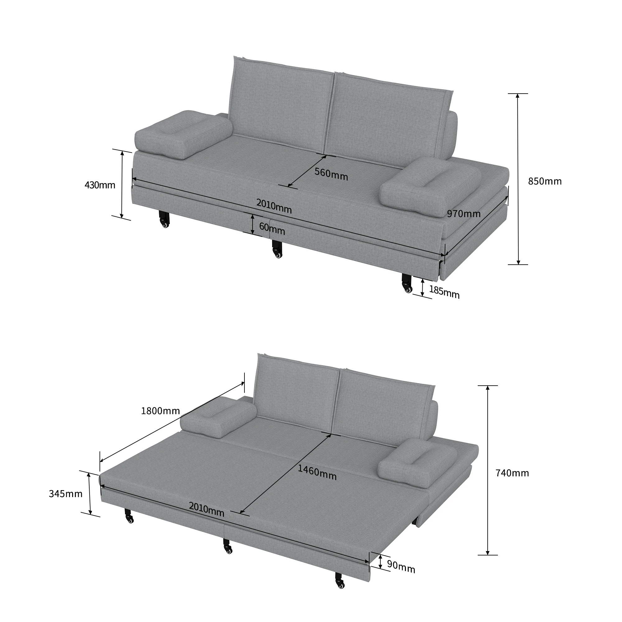 Raum Magie Transformation: Alltag in der kompakten Form von 90 * 200cm als Doppelsofa, leicht in den kleinen Hausraum integriert; Bei Bedarf schnell ausdehnbar Falten, Sekunden 180 * 200 cm geräumiges großes Bett, ein Doppelzweck super praktisch.