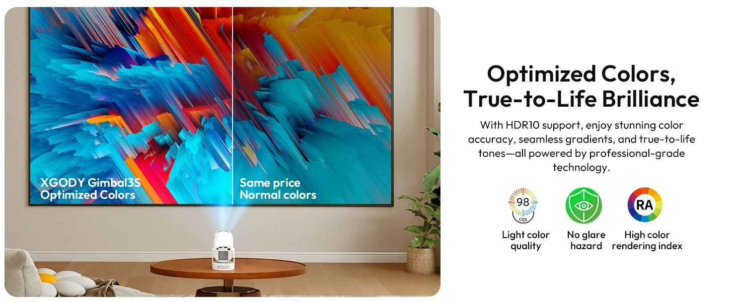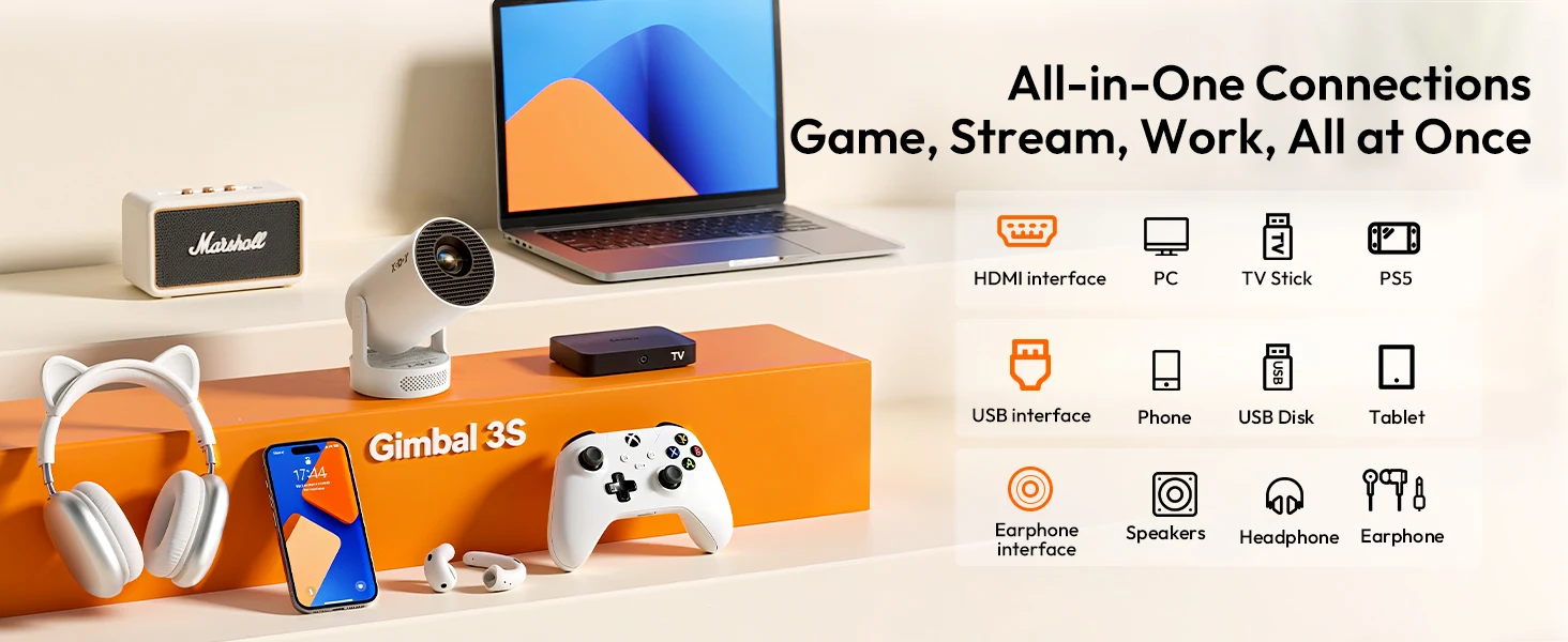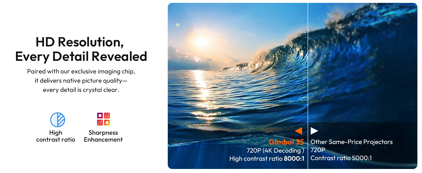HD-Projektion mit 4K-Kompatibilität – Erleben Sie atemberaubende visuelle Effekte mit diesem Mini-Projektor mit 1080p-Auflösung, 4K-Unterstützung, 12.000 Lumen Helligkeit und einer Projektionsfläche. Von 40 bis 150 Zoll. Verwandeln Sie jeden Raum in ein persönliches Heimkino.